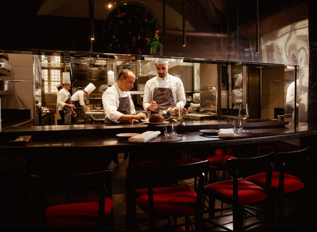 Il legame con il passato sembra più evidente. Ed esplicito: “la sua cucina e il suo servizio traggono linfa da una memoria condivisa, fatta di antichi testi e ricette del passato, riletti con sensibilità contemporanea”.