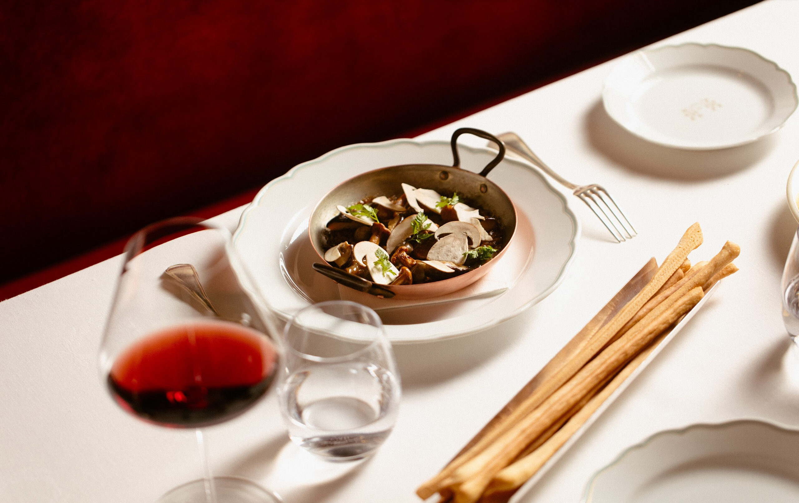 Una cucina dunque impegnata a valorizzare territorio e tradizione e un menù che celebra le radici della cucina regionale. A partire dal Gran Antipasto Piemontese: i Gofri del Piemonte, il Patè di vitello in gelatina, le Acciughe al verde e il Vitello tonnato.