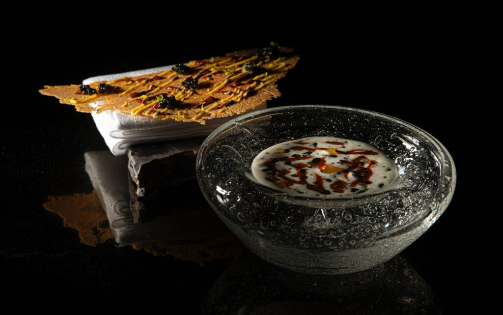 “Il percorso di Aqua nasce per rendere omaggio ai miei ricordi d’infanzia e alla profonda connessione che ho con il mare, testimone silenzioso ma potente di tanti miei viaggi di formazione nel mondo gastronomico – spiega Di Giorgio -. Le sette portate che ho studiato richiamano profumi, colori e sentori di brezza marina: ho voluto esplorare le infinite possibilità che uno scrigno di tesori come quello dell’acqua può offrire”.
