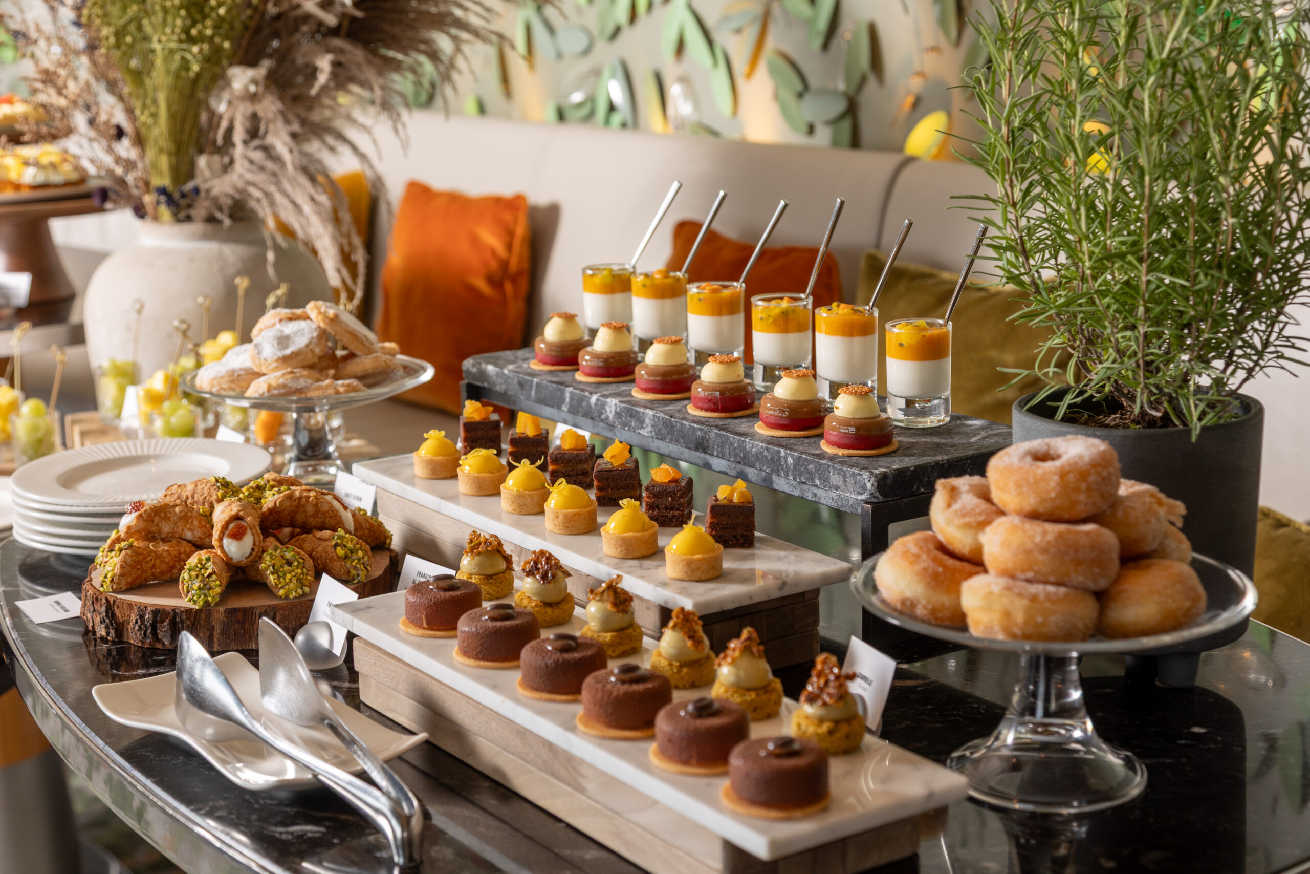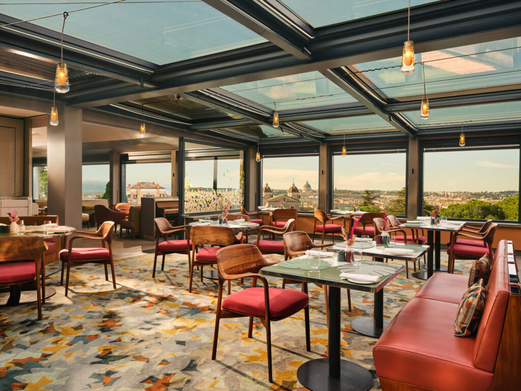 Indirizzo di culto per il rito dell’aperitivo, la terrazza dell’Eden fa da entusiasta contraltare all’angolo più intimo del ristorante fine dining, dove la cucina a vista instaura un dialogo silente con gli ospiti.