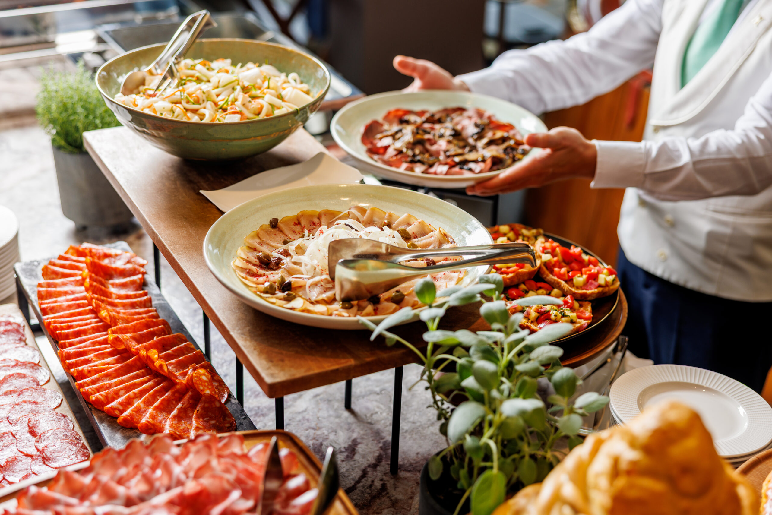 Bianco è l’executive chef responsabile dell’intera proposta gastronomica dell’hotel. Chiamato a soddisfare le esigenze (anche parecchio bizzarre) di una clientela internazionale, non sempre o addirittura raramente gourmet. Bisogna differenziare le proposte. Così l’Eden offre ai propri ospiti – e al pubblico esterno – sia la  cucina italiana “pura”, immediata e riconoscibile de Il Giardino Ristorante, con piatti spesso in condivisione, che la proposta fine dining di La Terrazza, in un momento in cui Roma vive una nuova euforia per l’alta ristorazione (Cracco è appena arrivato, Ducasse ha festeggiato il primo anno nella capitale).