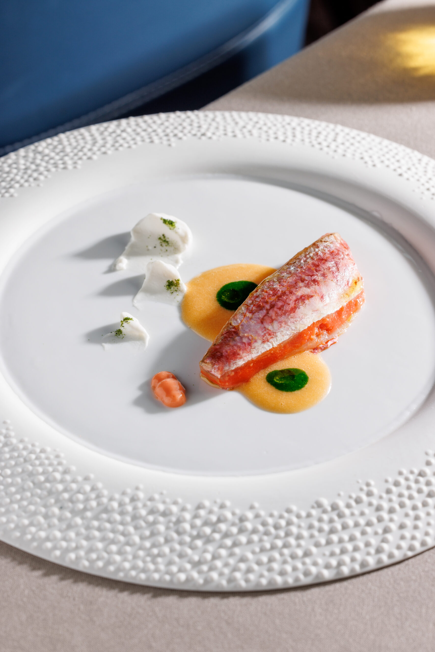 Due menu: il primo, La Persistenza della Memoria, dedicato ai signature dish, l’altro, La Metamorfosi, una libera espressione dei viaggi, delle esperienze e della evoluzione dello chef. Con espliciti riferimenti al mondo dell’arte. Perché per Bianco, cresciuto nel laboratorio di scultura e pittura di famiglia, la cucina è “l’unica forma d’arte capace di far interagire tutti i sensi contemporaneamente”. Collezionista di opere del Novecento, afferma di trovare nel Surrealismo una fonte di ispirazione costante.